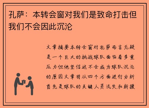 本篇文章将围绕前马竞球员托雷斯对于马德里竞技近期低迷开局的看法展开,重点分析他呼吁球队摒弃负面情绪,齐心协力团结一心的重要性。文章将从四个主要方面详细阐述托雷斯的观点,并结合马竞当前的困境,深入探讨如何通过团结和集体努力来扭转局势。首先,我们会探讨托雷斯对于球队情绪管理的重要性,他认为负面情绪的蔓延可能是球队低迷的根源之一。接着,文章将讨论如何通过强化团队合作,增强球队凝聚力,来提升马竞的战斗力。...