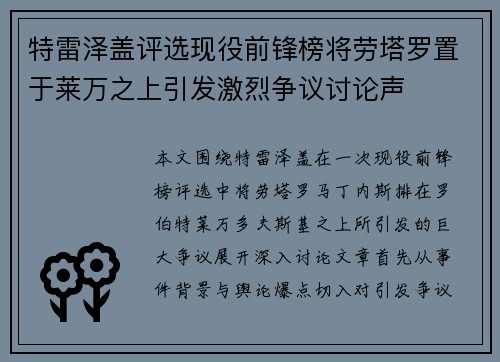本文围绕塔奇纳迪在拉齐奥惨败后的犀利批评展开,同时重点剖析他为何认为尤文图斯解雇图多尔是“极其合理”的决定。文章将从战术失序、球队精神、管理层判断以及意甲竞争格局四个方面切入,全面呈现塔奇纳迪言论背后的逻辑。通过对赛事背景、球队环境与教练变动等多维度的分析,本文不仅旨在还原塔奇纳迪观点的核心内容,也力图展示其批评背后反映的足球生态与行业运作规律。无论是拉齐奥惨败带来的震荡,还是尤文图斯果断止损的管...